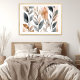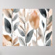 This print features a modern art abstract image of several botanicals in neutral shades of muted tan or beige and gray on a white background. This pretty poster has a boho chic aesthetic and will provide a touch of nature and sophistication to a living room, bedroom or bathroom. This unframed print is available in various sizes to fit standard frames.