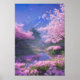 Cherry blossom trees bloom around a small pond, with delicate pink petals gently drifting on the water's surface. In the distance, majestic mountains complete the natural panorama, making for a breathtaking sight. This digital artwork captures the essence of the beauty of the cherry blossom season and the serene tranquility of nature, offering a moment of contemplation and appreciation for the natural world.