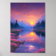Experience the beauty of nature with this stunning sunset scenery, featuring a calm river flowing through a picturesque landscape. Adorned with pink flowers on its banks and a lush forest in the distance, this digital artwork captures the essence of serenity and natural beauty. The warm hues of the sunset add a touch of tranquility to your living space, making it the perfect addition to any home.