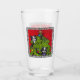 This glass tumbler for beverages has black and white naughty cats climbing a decorated Christmas Tree with a gold star on a red background inside a fancy black frame on the front and back.