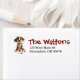 Add festive charm to your holiday mail with these personalized Christmas return address labels featuring a mischievous cartoon puppy tangled up in twinkling Christmas lights. The playful illustration sets a lighthearted holiday tone, perfect for spreading cheer with every card, package, or letter. Each label is fully customizable with your name and address, with the name printed in a bold red handwritten block font for a fun seasonal touch. A budget-friendly way to make your Christmas cards and gifts extra special, these labels bring a mix of cuteness, humor, and holiday spirit to your mailings.