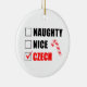 Naughty Nice Czech funny checklist featuring a candy cane. Santa has his own list for Czech people. A hilarious ornament for a Czech household.