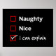 Naughty or nice – I can explain. Make sure you’re not on Santa’s naughty list. Nobody can be well behaved all year. All you need is a good excuse.