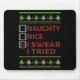 Naughty Nice I Swear I Tried Christmas Kids Women Mouse Pad