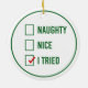 Naughty, Nice, I Tried - Funny Christmas Quote Ceramic Ornament