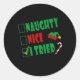 Naughty Nice I Tried Funny Santa Classic Round Sticker
