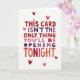 This bold card delivers a confident message right at the center: “THIS CARD ISN’T THE ONLY THING YOU’LL BE OPENING TONIGHT.” The lettering appears in a hand-drawn style that feels personal and intentional, set against a bright white background that keeps the focus on the words. Each letter flows in shades of red, orange, pink, and purple, creating a warm and eye-catching rhythm across the design. Small hearts in red and pink are scattered around the message, adding romance and charm. The balance of color and spacing makes the message easy to read while still feeling intimate and cheeky. This card blends affection, humor, and anticipation, making it a fun and memorable choice for Valentine’s Day. ❤️💌🍫