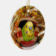 Yellow and green parakeet or budgie in a broken Christmas ornament and gold bird lovers ornament