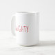 A Rae Dunn-inspired Christmas coffee mug with the saying Naughty in red.
