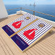 Set sail for fun with this vibrant nautical-themed cornhole set! Featuring bold red sailboats gliding across a classic navy and white striped background, these boards are perfect for any beach party, backyard barbecue, or boating enthusiast. The design includes "NAUTI-GIRLS Team" and "NAUTI-BOYS Team" text, adding a playful touch for friendly competition. Imagine the laughter and cheers as teams gather for a game, all while enjoying the coastal charm of this eye-catching cornhole set. Durable and stylish, these boards are sure to be a hit for your next outdoor gathering, bringing a touch of the sea to your festivities.