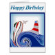 A nautical scene featuring an abstract sea with a sailing boat in a wave and a lighthouse. This colorful and fun artwork is from my original glass painting with a digital effect. Easily personalised with your own text ©Annabel Potter