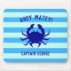 Gift your favorite sailing Captain with a personalized "Ahoy Matey" mouse pad. This mousepad features a blue crab and nautical beach stripes.