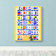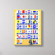 Nautical Alphabet Flags Canvas Print. Nautical signal code flags A (Alfa) to Z (Zulu) and fully customizable texts "Fair winds & following seas" (nautical speak for good trip and safe voyage) with yacht sailing the waves and customizable side texts "International Nautical Signal Code Flags" canvas. A great nautical alphabet flags poster for a watersports fan or yacht sailing boat owner or captain.