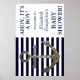 Ahoy, It's a Boy, nautical baby shower welcome sign/poster. Finish off your baby shower decor with sailing themed placemats. All of the wording can be personalized. This welcome poster features a printed sparkle looking anchor on a striped nautical background.