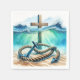A wooden cross rises above turbulent ocean waves, symbolizing stability and faith amidst chaos