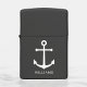 Modern Minimalist Nautical Lighter featuring white anchor with personalized name in white modern sans serif font style on black lighter.