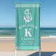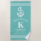 Nautical Anchor Beach House Family Name Teal Beach Towel. Personalize this custom design with your own family name, year established, city and state. The perfect summer beach towels for your family lake house, cottage, or beach house.