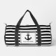 Nautical Anchor Boat Name Black White Striped Duffle Bag