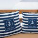 Nautical Anchor Boat Name Navy Blue Striped Throw Pillow