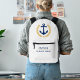 Nautical Anchor Captain Boat Name Gold Laurel Navy Printed Backpack
