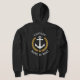 A custom designed (front and back) nautical boat anchor, gold style laurel leaves and a gold star with Captain rank or other title and your personalized name or boat name on a black zip-up hoodie. Several other colors available. Makes a great gift.
