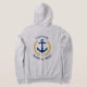 A custom designed (front and back) nautical boat anchor, gold style laurel leaves and a gold star with Captain rank or other title and your personalized name or boat name on a gray zip-up hoodie. Makes a great gift.