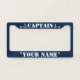 Nautical anchor custom boat captain name car License Plate Frame. Add your own name or funny quote. Make your own custom frames for your vehicle or boat trailer. Unique automotive gift ideas for him or her. Birthday gift idea for sailor, skipper, boat captain, sailing enthusiast, yachting friend, boating people, dad, husband, boyfriend, grandpa etc. Navy blue and white colors with ship anchor.