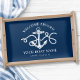 Entertain your guests aboard your boat with this classic navy blue and white nautical serving tray featuring a vintage style anchor entwined in a rope, and templates for the custom boat name and ship's registry.
