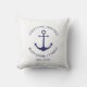 Custom Boat name or Family name, Welcome Aboard, nautical navy blue anchor and text Throw Pillow.