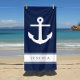 Nautical Anchor Custom Name Navy Blue Beach Towel
