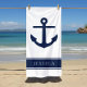 Nautical Anchor Custom Name Powder Blue Beach Towel