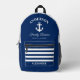 Nautical Anchor Family Reunion Navy Blue Stripes Printed Backpack