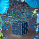 Anchor pattern on a navy blue background party box. Great nautical themed for a baby shower, kids birthday party or wedding celebration.