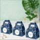 Nautical party box with a white anchor anchor repeating pattern. Great for kids birthday.