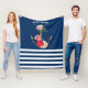Nautical,Anchor Flowers Navy Blue Stripes Fleece Blanket
