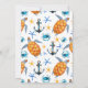 Nautical Anchor housewarming party celebration invitation. Invite features blue anchor and orange sea turtle pattern.
