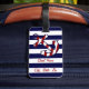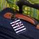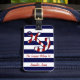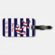 This nautical anchor luggage tag will look cute and fashionable whether flying to the beach or cruising the seas. The design features a red and white diagonally striped anchor on horizontal navy and white stripes. Customize with your name and address.
