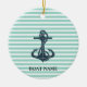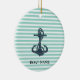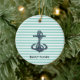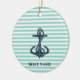 Nautical,Anchor,Mint Green Stripes Ceramic Ornament
