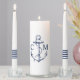 Nautical Anchor Navy Blue Monogram Stripe Unity Candle Set