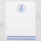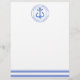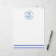 NewParkLane - Personalized Letterhead, with a navy blue striped pattern and a blue watercolor anchor in a circular frame, containing your names and wedding date & place. A fun, modern design for a nautical themed wedding celebration!