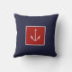 Nautical Anchor Navy Blue Red Throw Pillow
