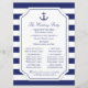 Perfect for your nautical themed wedding, this program card features a classic navy blue anchor with rope and a blue and white striped background. Front of the card includes the names of the bride and groom, location of the ceremony, and a listing of the wedding ceremony, The back of the card has the names of the parents, officiant and bridal party which may all be personalized.