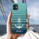 This nautical inspired retro striped phone case features an anchor with your monogram letter. Personalize with a name. Great for any boating or sailing enthusiast.