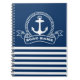 Nautical Anchor Navy Blue Striped Notebook