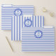 NewParkLane - Personalized, Nautical File Folders, with an elegant navy blue and white striped pattern, with a blue round frame with an anchor for your personal text. Easy to customize in Zazzle for a personalized design. All text style, colors, sizes can be modified to fit your needs.