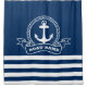 Nautical Anchor Navy Blue Striped Shower Curtain