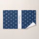 A classic navy blue background decorated with a white colored anchor pattern. Personalize and add a name, white letters.