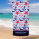 Looking for a unique and custom gift for the boater or sailing enthusiast in your life? Look no further than this nautical anchor and starfish beach towel! This navy blue and white striped towel is perfect for days spent on the boat or at the lake house. It's also a great bathroom towel or beach towel for those who love all things nautical. This towel can be personalized with a name, making it a truly unique gift.