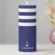 Nautical Stripes Custom Boat Name or family name white anchor navy blue Background Pillar candle.