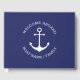 Custom Boat name or Family name, Welcome Aboard, nautical white anchor. white letters navy blue Guest Book.